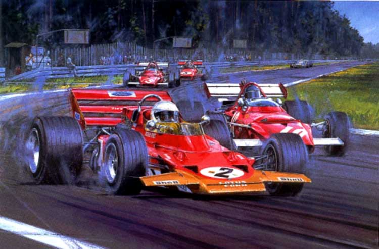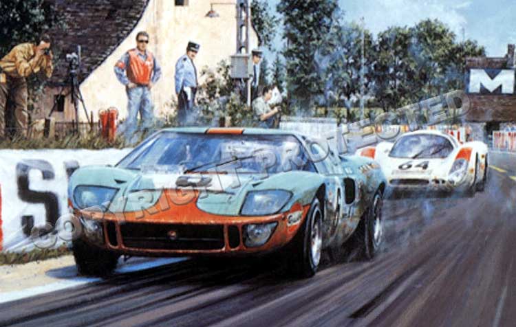 Nicholas Watts was born in 1947 near Brands Hatch, where his father regularly took him during his childhood. These regular visits to the mythical English circuit clearly had a profound effect on the young Watts. Inhabited by a real artistic talent, he created his very first work dedicated to the automobile by designing a Bugatti Type 37A. He was just 16 years old. Nick’s passion for painting cars then developed very quickly. He joined the RAF for a period of his life and then had the opportunity to attend many great races, including his favorite: the legendary Targa Florio.  Nicholas Watts and Jacky Ickx |